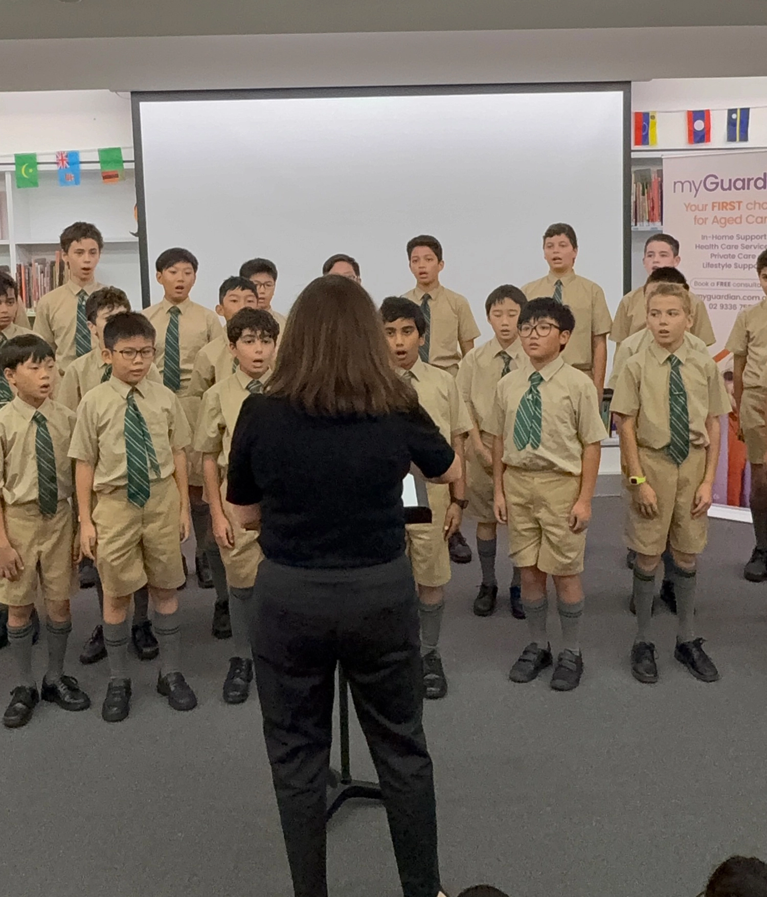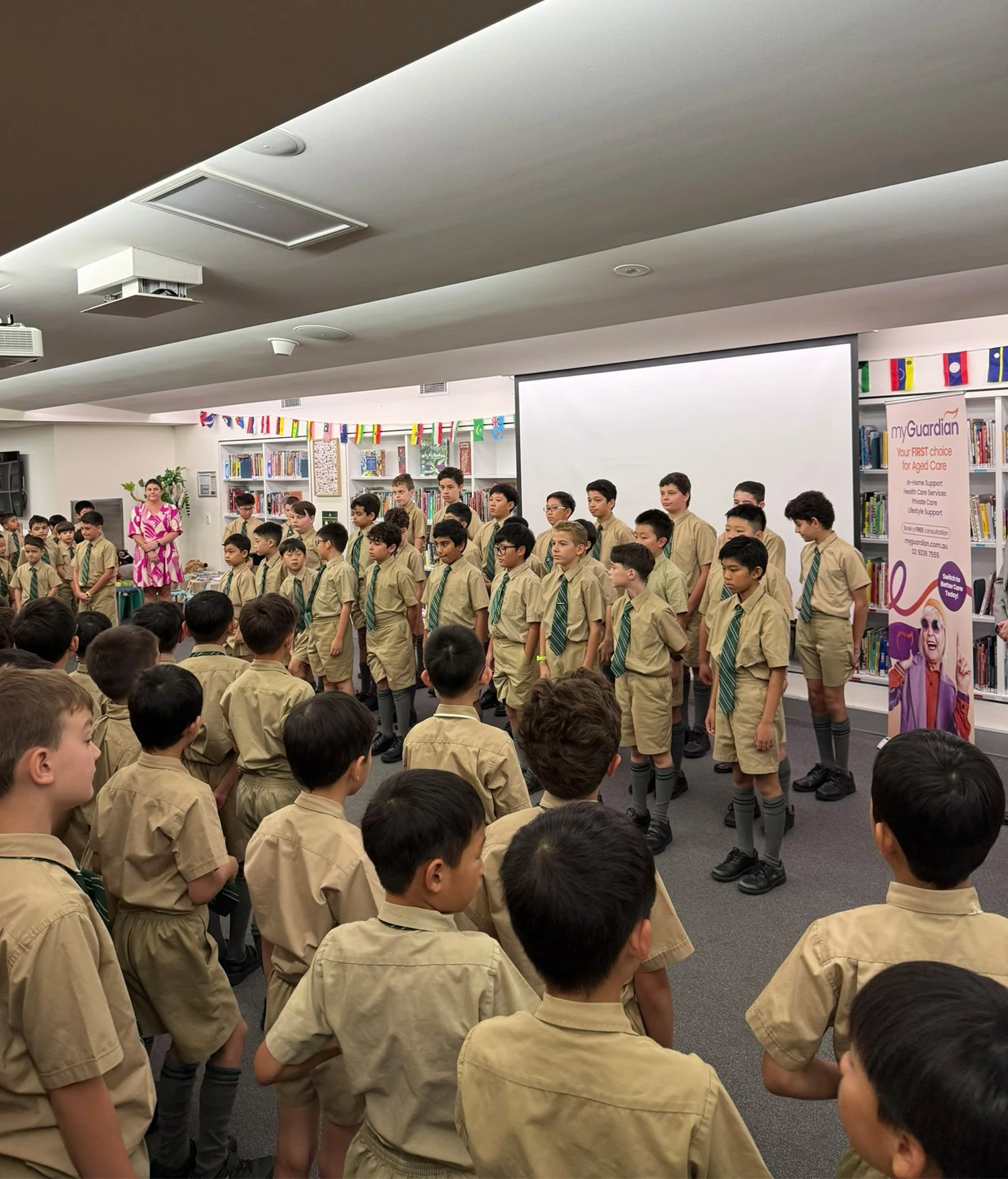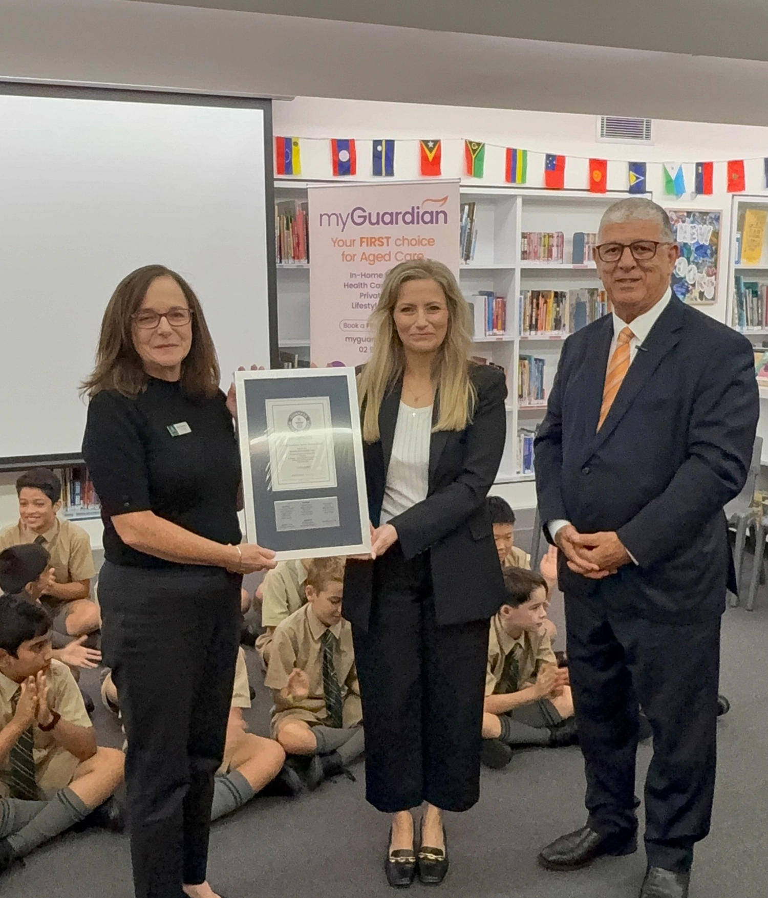 The connection didn’t stop at the stage. The students formed an impromptu honour guard at the red carpet entrance, applauding our guests as they arrived with their families and My Guardian carers. It was a simple but powerful gesture that made the centenarians feel truly celebrated.